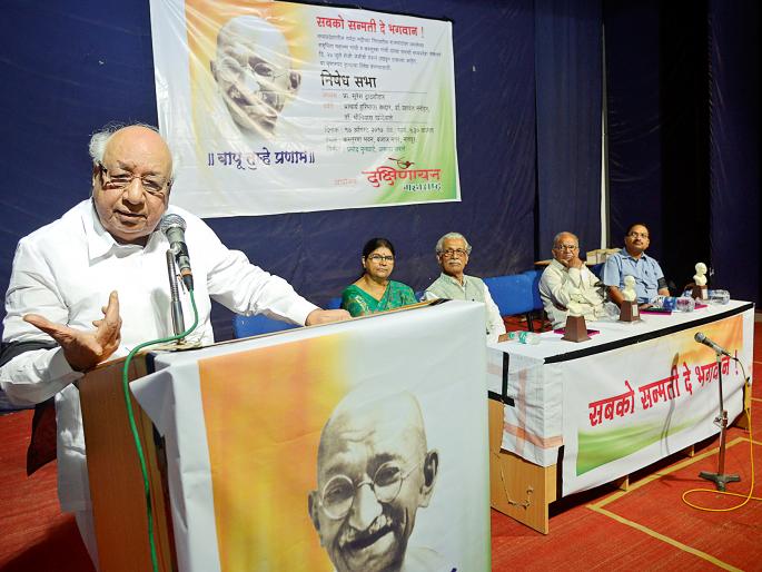 मध्य प्रदेशातील राष्ट्रपिता महात्मा गांधी व कस्तुरबा गांधी यांच्या समाधी जेसीबीने उखडण्याच्या कृत्याचा निषेध करण्यासाठी दक्षिणायन महाराष्ट्र संस्थेच्यावतीने गुरुवारी बजाजनगरातील कस्तुरबा भवन येथे सभा आयोजित करण्यात आली होती. त्यावेळी ते अध्यक्ष म्हणून बोलत होते. राष्ट्रसंत तुकडोजी महाराज नागपूर विद्यापीठाचे माजी कुलगुरू हरिभाऊ केदार आणि विदर्भावादी नेते व अर्थतज्ज्ञ डॉ. श्रीनिवास खांदेवाले प्रमुख वक्ते म्हणून उपस्थित होते.