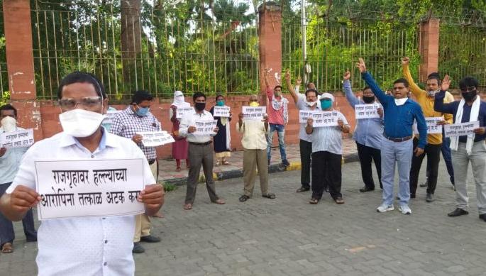 लोकमत न्यूज नेटवर्कनागपूर : डॉ. बाबासाहेब आंबेडकर यांच्या मुंबई येथील ‘राजगृह’ या निवासस्थानी मंगळवारी काही समाजकंटकांनी हल्ला करीत तोडफोड केली. या घटनेचे संतप्त पडसाद देशभरात उमटत आहेत. नागपुरातही या घटनेमुळे समाजात असंतोष पसरला आहे. रिपाइं, काँग्रेस, भाजप, वंचित बहुजन आघाडीसह विविध राजकीय पक्ष व संघटनांनी या घटनेचा जाहीर निषेध केला. राजगृहावरील हा हल्ला म्हणजे आंबेडकरी विचार व महाराष्ट्राच्या अस्मितेवरील हल्ला असून यातील आरोपींना तातडीने अटक करण्यात यावी, अशी मागणी करण्यात आली आहे.काँग्रेसब्लॉक क्रमांक ९ तर्फे काँग्रेसचे शहराध्यक्ष आ. विकास ठाकरे यांच्या मार्गदर्शनात माटे चौक येथील डॉ. बाबासाहेब आंबेडकर यांच्या पुतळ्याजवळ तोंडाला काळे मास्क व हातावर काळी पट्टी बांधून राजगृहावरील हल्ल्याचा निषेध करण्यात आला. दोषींना तातडीने अटक करण्याची मागणी करण्यात आली. पंकज निघोट यांच्या नेतृत्वातील आंदोलनात अजय नासरे, आकाश तायवाडे, नितीन बनसोड, चक्रधर भोयर, अभिजित जाधव, संजय तुरणकर, वैभव काळे, शुभम आमधरे, अभय सोमकुळे आदींचा समावेश होता.भाजपभारतीय जनता पक्षातर्फे प्रदेश सचिव व मनपा विधी समितीचे सभापती अॅड. धर्मपाल मेश्राम यांच्या नेतृत्वात संविधान चौक येथे राजगृहावरील तोडफोडीचा निषेध करण्यात आला. यावेळी आरोपींना तातडीने अटक करण्याची मागणी करण्यात आली. निदर्शनात अशोक मेंढे, नेताजी गजभिये, सतीश शिरसवान, राहुल झांबरे, विशाल लारोकर, इंद्रजित वासनिक, शंकर मेश्राम, रोहन चांदेकर, अजय करोसिया, रणजित गौरे, राजू चव्हण, अशोक डोंगरे, विनोद कोटांगळे, विराग राऊत, सुनील वाहाने, शशिकला बावने, नम्रता माकोडे, प्रदीप मेंढे, अशोक लारोकर, आकाश सबळ, विनोद ठाकूर आदींचा समावेश होता.रिपब्लिकन सेनाराजगृहाला कायमस्वरुपी सुरक्षा पुरवण्यात यावी, अशी मागणी रिपब्लिकन सेनेतर्फे करण्यात आली. जिल्हाधिकाऱ्यांमार्फत मुख्यमंत्री व गृहमंत्र्यांना निवेदन सादर करण्यात आले. शिष्टमंडळात प्रदेश अध्यक्ष सागर डबरासे, धर्मपाल वंजारी, राजकुमार तांडेकर, नरेंद्र तिरपुडे, शरद दढाळे, हरीश बेलेकर, जयकुमार उके, सुनिता नवगाने, रमा वंजारी आदींचा समावेश होता.दलित सेनाआरोपीला तातडीने अटक करा, अशी मागणी दलित सेनातर्फे जिल्हाधिकाऱ्यांना करण्यात आली. शिष्टमंडळात राष्ट्रीय कार्यकारिणी अध्यक्ष सूर्यमणी भिवगडे, शहर अध्यक्ष प्रमोद सहारे, भास्करराव दरवाडे, प्रशांत लखे, सुरेश तामगाडगे यांचा समावेश होता.भारतीय बौद्ध महासभाभारतीय बौद्ध महासभेने या घटनेचा निषेध करीत आरोपीला तातडीने अटक करण्याची मागणी केली. जिल्हाधिकाऱ्यांना निवेदन सादर करणाऱ्या शिष्टमंडळात भीमराव फुसे, सी.आर. सोनडवले, आनंद सायरे