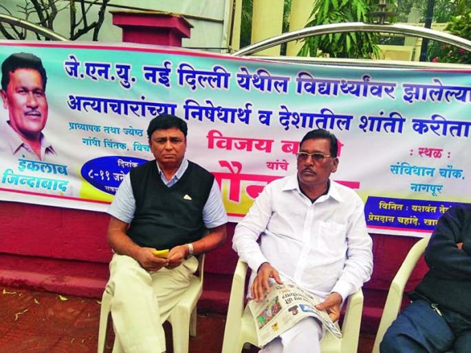 लोकमत न्यूज नेटवर्कनागपूर : दिल्ली येथील जवाहरलाल नेहरू विद्यापीठ(जेएनयू)मधील विद्यार्थ्यांवरील हल्ल्याच्या निषेधार्थ नागपुरातील प्राध्यापक आणि झोपडपट्टी फुटबॉलचे प्रवर्तक प्रा. विजय बारसे यांनी मौनव्रत धारण केले आहे. बुधवारी संविधान चौकात त्यांनी आपल्या आंदोलनाची सुरुवात केली असून, ते तीन दिवस मौन राहतील.मौनव्रत धारण केलेल्या प्रा. बारसे यांच्यावतीने माजी नगरसेवक तनवीर अहमद यांनी सांगितले की, दिल्ली येथील जेएनयूवरील विद्यार्थ्यांवर जो अमानुष हल्ला झाला तो अतिशय संतापजनक आहे. हा हल्ला सरकार प्रायोजित हल्ला आहे. ज्यांनी हल्ला केला त्यांनी या हल्ल्याची कबुली दिली. त्यांच्यावर गुन्हे दाखल न करता जे पीडित आहेत, त्यांच्याविरुद्धच गुन्हे दाखल केले जात आहेत. सरकार लोकांची दिशाभूल करीत आहे. आरोपींची नावे उघड झाली तर सरकारचे पितळ उघडे पडेल. केंद्रातील सरकार असंवेदनशील असून, या सरकारची आत्मा जागी व्हावी, पीडितांना न्याय मिळावा, यासाठी हे मौनव्रत आंदोलन आहे.