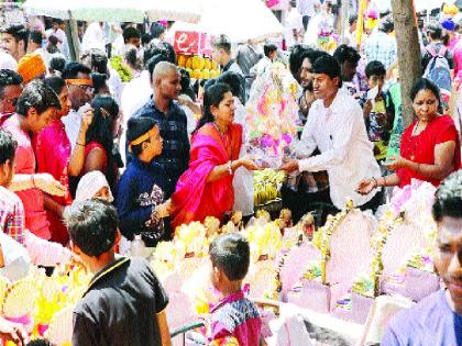 बाजारात बलूनपासून तयार केलेले विमान व मासे, कासव, पोपटाची किमत ३० रुपयापासून ५० रुपयापर्यत होती. ‘गणपती बाप्पा मोरया’ नावाची पट्टी १५ रुपयाला विकली जात होती. उंच बांबूवर लटकाविलेले विमान सर्वांचे आकर्षण ठरत होते. सिंहासन, चौरंगावर, पाटावर, अंबारित, मोरावर, हत्तीवर, सिंहावर विराजमान झालेले गणपती बाजारात विक्रेत्यांनी विक्रीसाठी आणले होते.