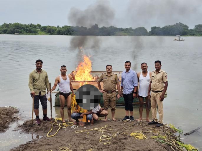 नांदेड ग्रामीण पोलिस ठाण्याच्या पथकाला विष्णुपुरी भागात गोदावरी नदी पात्रातून काही वाळू माफिया बेकायदेशीर वाळू उपसा करीत असल्याची माहिती मिळाली. त्यावरून ग्रामीण ठाण्याच्या पथकाने दुपारी ४:३० वाजण्याच्या सुमारास या ठिकाणी छापा मारला असता पोलिसांना पाहून पाच ते सहा आरोपी नदीपात्रात उडी मारून दुसऱ्या तीरावरून पळून गेले. दोघे नदीपात्रातून पोहत जात असताना पोलिस अधिकारी व अंमलदारांनी चक्क नदीपात्रातील पाण्यात उड्या मारून त्यांना ताब्यात घेतले. पोलिसांनी या कारवाईत १ लाख २५ हजारांचा वाळूसाठा, १२ लाखांचे सहा इंजिन, ८ लाख ५० हजारांचे १७ तराफे असा एकूण २१ लाख ७५ हजारांचा मुद्देमाल जप्त केला. तसेच पांडुरंग महादराव हंबर्डे (२५, रा. काळेश्वर विष्णुपुरी), अच्छेलाल गुलाबचंद राम (३२, रा. लक्ष्मणपुरा उत्तर प्रदेश) व इतर आठ आरोपींविरुद्ध ग्रामीण ठाण्यात गुन्हा नोंदविला. तसेच काही तराफे पोलिसांनी जाळून नष्ट केले.