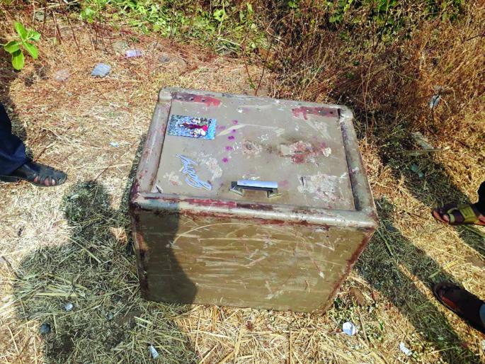 लोकमत न्यूज नेटवर्कउमरी : मरखेल पोलीस ठाण्याच्या हद्दीत जिल्हा मध्यवर्ती बँकेत डिसेंबरमध्ये चोरी झाली होती़ या घटनेत चोरट्यांनी बँकेची तिजोरीच लांबविली होती़ ही तिजोरी रविवारी उमरी परिसरात सापडली़ पोलिसांनी ही तिजोरी जप्त केली असून या प्रकरणाचा तपास सुरु आहे़जिल्हा मध्यवर्ती बँकेच्या हणेगाव शाखेत २४ डिसेंबर रोजी चोरी झाली होती़ या घटनेत चोरट्यांनी बँकेतील तिजोरीच पळविली होती़ तिजोरीत पाच हजार रुपये होते़ यावेळी चोरट्यांनी पैसे न मिळाल्याने बँकेतील कागदपत्रे अस्ताव्यस्त करुन बाहेर फेकली होती़ जिल्हा मध्यवर्ती बँकेची हणेगाव शाखा सध्या बंद असून बँकेतून व्यवहारही करण्यात येत नाहीत़ त्यामुळे या ठिकाणाहून चोरट्यांना काहीच हाती लागले नव्हते़ या प्रकरणात मरखेल पोलीस ठाण्यात गुन्हा नोंदविण्यात आला होता़ दरम्यान, रविवारी सकाळी ११ वाजता पोलिसांना या तिजोरीबाबत गोपनीय माहिती मिळाली़त्यानंतर पोनि़एस़ एस़ शेळके, पोउपनि खेडकर, पोहेकॉ़ कात्रे, ढोले, चुकेवाड हे उमरी परिसरात गेले़ या ठिकाणी समाजकल्याण वसतिगृहाच्या शेजारी एका झुडुपात पोलिसांना ही तिजोरी आढळली़ गोदरेज कंपनीची जवळपास दीडशे किलो वजनाची तिजोरी फोडण्यात चोरट्यांना यश आले नसल्यामुळे ती झुडुपात टाकून देण्यात आली होती़ सहाय्यक पोलीस अधीक्षक नुरुल हसन यांच्या मार्गदर्शनानुसार तिजोरी जप्त करण्यात आली़ सदरील तिजोरी हणेगाव येथील जिल्हा मध्यवर्ती बँकेची असल्याचे स्पष्ट करण्यात आले़ दरोडेखोरांनी तिजोरी उमरी परिसरात आणून टाकल्यामुळे तेही याच परिसरातील असावेत या दृष्टीने पोलिसांनी शोध सुरु केला आहे़