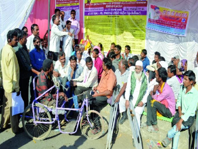 लोकमत न्यूज नेटवर्कनांदेड: दिव्यांगाच्या विविध प्रलंबित प्रश्नांवर गुरूवारपासून जिल्हाधिकारी कार्यालयासमोर अपंग मित्रमंडळ संघर्ष सेनेच्यावतीने बेमूदत धरणे आंदोलन सुरू केले आहे़ या आंदोलनात जिल्हाभरातील दिव्यांग सहभागी झाले आहेत़ त्यात वृध्दांचाही समावेश आहे़दिव्यांगांच्या प्रश्नावर जिल्ह्यात अपंग मित्र मंडळ संघर्ष सेनेच्यावतीने आतापर्यंत जिल्हाधिकाºयांसह विविध विभागप्रमुखांशी चर्चा करण्यात आली़ मात्र दिव्यांगांच्या प्रश्नांवर तोडगा निघाला नाही़उपोषण, मोर्चा, भीक मागो आंदोलन, मुंडन आंदोलन असे विविध १७ प्रकारचे आंदोलन करण्यात आले़ मात्र याची दख न घेतल्याने दिव्यांगांनी १८ जानेवारीपासून जिल्हाधिकारी कार्यालयासमोर बेमूदत धरणे आंदोलनाला प्रारंभ केला आहे़धरणे आंदोलनासंदर्भात जिल्हाधिकारी अरूण डोंगरे यांच्याशी शिष्टमंडळाने चर्चा केली़ मात्र ठोस आश्वासन न मिळाल्याने हे आंदोलन बेमूदत सुरू ठेवण्याचा निर्धार दिव्यांगांनी केला आहे़ जवळपास ३०० दिव्यांग या आंदोलनात सहभागी झाले आहेत़दिव्यांगांना दिले जाणारे प्रमाणपत्र हे अपात्र व्यक्तींना देण्यात येऊ नयेत, दिव्यांगांचे या ना त्या कारणांमुळे नाकारलेले प्रमाणपत्र त्वरीत देण्यात यावेत, दिव्यांगाना शासनाच्या योजनांचा लाभ नियमितपणे द्यावा, दिव्यांगांचा तीन टक्के निधी वेळेवर खर्च करावा, दिव्यांगांना व्यवसायासाठी जागा उपलब्ध करून द्यावी आदी मागण्या यावेळी करण्यात आल्या आहेत़ आंदोलनात चंपतराव डाकोरे, विठ्ठल कतरे, पठाण इम्रानखान,अशोक मुळेकर, संतोष चाभरेकर, शंकर मुपडे, कलावती पोहरे, अशोक कानगुले, शेषराव रंडाळे, व्यंकटराव जाधव, बापुराव लामदाडे, भानुदास शिंदे, रामजी लांडगे आदींचा समावेश आहे़