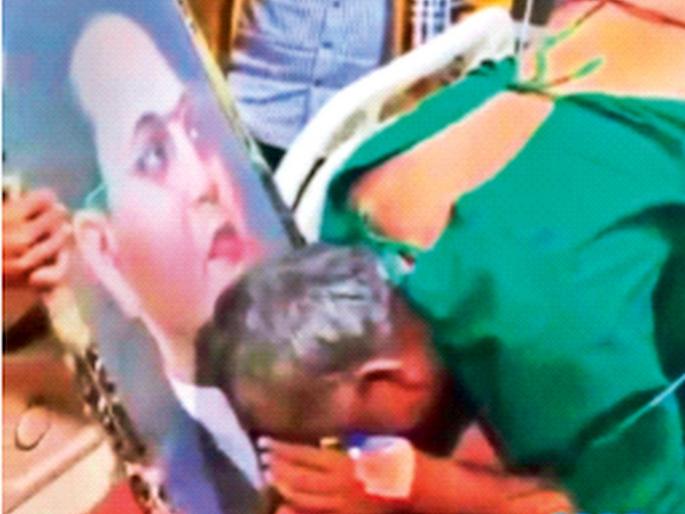 लोकमत न्यूज नेटवर्क नांदेड : परभणी येथे एका माथेफिरूने संविधान शिल्पाची नासधूस केली होती. त्यानंतर परभणीत गेले दोन दिवस मोठ्या प्रमाणात हिंसाचार उफाळला होता. या प्रकरणातील आरोपीवर विष्णुपुरी येथील शासकीय रुग्णालयात उपचार सुरू होते. गुरुवारी रात्री पावणेदहाच्या सुमारास पाच ते सात भीमसैनिक आयसीयू कक्षात शिरले. यावेळी त्यांनी बाबासाहेबांची प्रतिमाही आणली होती. आरोपीने बाबासाहेबांच्या प्रतिमेसमोर नतमस्तक होत माफी मागितली. या घटनेचा व्हिडीओ सोशल मीडियावर व्हायरल झाला आहे.