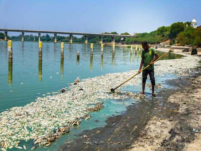 नांदेड:गोदावरी नदीपात्रात अचानकपणे लाखो मासे मृतावस्थेत आढळून आले आहेत. गोवर्धन घाट परिसरात लाखो माशांचा खच पडला असून नदीपात्रात मृत मासे तरंगत आहेत. परिणामी परिसरात दुर्गंधी पसरली आहे. सदर मासे काढण्यासाठी मनपा यंत्रणा कामाला लागली असून जेसीबीच्या सहाय्याने मासे काढले जात आहेत. परंतु, एवढ्या मोठ्या प्रमाणात मासे मृत होण्याची ही तिसरी वेळ असूनही प्रशासनाला कारण शोधता आलेले नाही. त्यामुळे या निष्पाप माशांचा मृत्यूबद्दल कोणाला जबाबदार पकडणार, असा प्रश्न आहे.