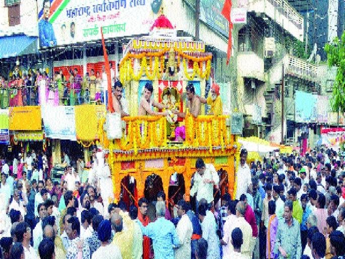 लोकमत न्यूज नेटवर्कनांदेड : ‘गोविंदा गोविंदा व्यंकट रमणा गोविंदा’ च्या गजरात लाखो भाविकांनी गुरुवारी भगवान बालाजीचे दर्शन घेतले. सायंकाळी निघालेल्या भगवान बालाजीच्या रथयात्रेतही भाविकांनी सहभागी होण्यासाठी गर्दी केली.शहरातील बालाजी मंदिरात गुरुवारी पहाटेपासूनच दसऱ्यानिमित्त दर्शनासाठी भाविकांनी रांगा लावल्या होत्या. प्रतिकात्मक सोने एकामेकांना देवून शुभेच्छाही दिल्या. दस-यानिमित्त सणानिमित्त शहरात विविध ठिकाणी धार्मिक कार्यक्रम घेण्यात आले पूजेचे साहित्य खरेदी करण्यासाठी नागरिकांनी बाजारपेठेत गर्दी केली होती.दरवर्षीप्रमाणे याहीवर्षी बालाजी मंदिरामध्ये दसरा महोत्सव मोठ्या उत्साहात साजरा करण्यात आला. ‘गोविंदा गोविंदा गोविंदा’ या घोषणेने बालाजी मंदिर परिसर दणाणून गेला होता. दसरा महोत्सवानिमित्त बालाजी मंदिरावर विद्युत रोषणाई करण्यात अलाी होती. श्री बालाजीचे दर्शन घेण्यासाठी शहरासह परिसरातील भाविक नांदेडात दाखल झाले होते.सायंकाळी सहाच्या सुमारास रथयात्रेला प्रारंभ झाला. लाखो भाविकांनी या रथयात्रेत सहभाग नोंदविला. ‘गोविंदा गोविंदा, व्यंकटरमणा गोविंदा’ च्या गजराने परिसर दुमदुमला होता. श्री बालाजी मंदिरापासून जुन्या मोंढ्यापर्यत आणि दुसºया बाजूने गुरुद्वारा चौकापर्यत पाय ठेवायलाही जागा नव्हती. लाखो भाविक या ठिकाणी उपस्थित होते.शहरातील जुन्या नांदेडात गाडीपुरा येथे रावणदहन करण्यात येतो. गाडीपुरा येथील हनुमान मंदिरातही दर्शनासाठी हजारो भाविक जमले होते. गाडीपुरा येथे गेल्या अनेक वर्षापासून रावणदहनाचा कार्यक्रम होतो. रात्री दहाच्या सुमारास रावणदहन करण्यात आला.दरम्यान, गुरुवारी संघ परिवाराच्या वतीने सकाळी शहरातील मल्टी पर्पज हायस्कूल येथून पथसंचलनाला प्रारंभ करण्यात आला. चिखलवाडी, बडपुरा, भगतसिंग चौक, लालवाणी पेट्रोलपंप मार्गे बर्की चौक आणि परतीच्या मार्गाने हबीब टॉकीज, रेणूकामाता मंदिर, जुना मोंढा, गुरुद्वारा चौक मार्गे परत मल्टीपर्पज हायस्कूल येथे या पथसंचालनाचा समारोप करण्यात आला. यावेळी संघाचे डॉ. सुधीर कोकरे, डॉ. गोपाल राठी, विक्रम खतगाये, हेमंत इंगळे, अमोल अंबेकर, बापू किनगावकर, मंगेश नवकांडे, व्यंकटेश शिनगारपुतळे यांच्यासह भाजपाचे महानगराध्यक्ष डॉ. संतुकराव हंबर्डे, चैतन्य देशमुख, संजय कौडगे, प्रवीण साले, शीतल खांडील, विरोधी पक्ष नेत्या गुरुप्रितकौर सोडी, भाजपा युवा मोर्चाचे दिलीपसिंघ सोडी, मोहनसिंह तौर आदींची उपस्थिती होती.संघाच्या कार्यकर्त्यांनी डॉ. बाबासाहेब आंबेडकर यांच्या पुतळ्यासही धम्मचक्र प्रवर्तन दिनानिमित्त अभिवादन केले. दरम्यान, शहरातील अनेक भागात दस-यानिमित्त प्रतिकात्मक रावणा
