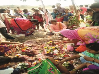 ‘पैनगंगे'च्या पात्रात आढळल्या अखंड दगडावर नऊ पिंडी