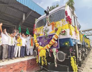 कोरोना प्रतिबंधात्मक नियमांचे भाजप नेत्यांना विसर, नांदेड-हडपसर रेल्वेचे औरंगाबादेत स्वागत