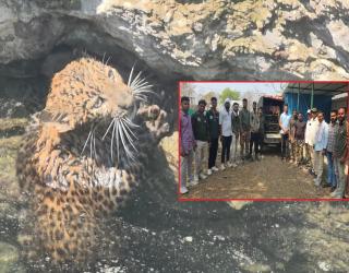 नांदेड : पाण्याच्या शोधातील बिबट्या विहिरीत पडला; माहूर वन अधिकाऱ्यांच्या तत्परतेमुळे यशस्वी सुटका
