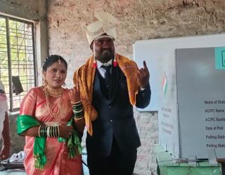 जोडा शोभतो! बोहल्यावर चढण्या अगोदरच वधू- वर पोहचले मतदानाला