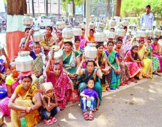 नांदेड जिल्हाधिकारी कार्यालयावर घागरमोर्चा