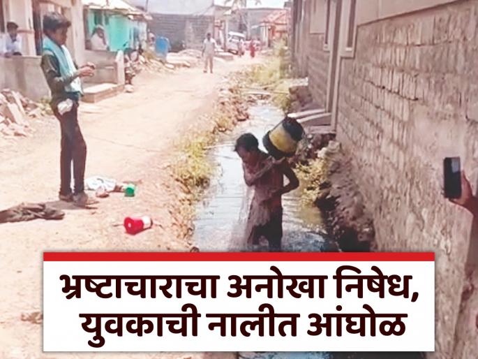 धर्माबाद ( नांदेड ): तालुक्यातील राजापूर येथील गावात भ्रष्टाचाराचा कळस गाठला असून, दीड महिन्यांपूर्वी खोदून ठेवलेल्या नालीचे बांधकाम अद्याप केले नाही. त्यामुळे येथील युवक विलास शिंदे यांनी संतापून २१ एप्रिल रोजी दुपारी गावातील नालीत उतरून नालीच्या घाण पाण्याने आंघोळ करून ग्रामपंचायतीचा निषेध केला आहे.