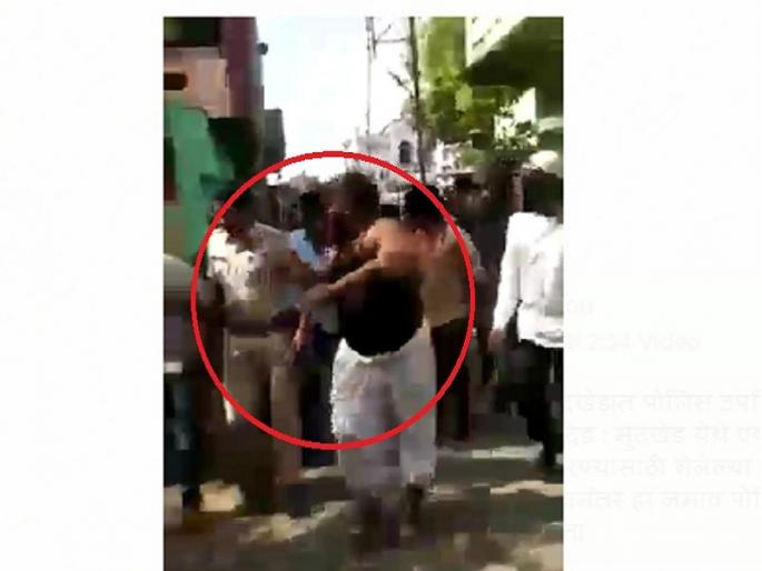 मुदखेड येथे एका घरात गोमांस असल्याची माहिती मिळाल्यानंतर पोलिस उपनिरीक्षक शिंदे हे त्या ठिकाणी एकटेच गेले होते़ खुरेशी गल्लीमध्ये एका घरात ते तपासणी करीत असताना जमावाने त्यांना अटकाव केला़ तसेच शिवीगाळ करीत धक्काबुक्की केली़ त्यामुळे शिंदे यांना माघारी परतावे लागले़ त्याच दरम्यान जमाव पोलिस ठाण्यावर धडकला़ यावेळी जमावाने पोलिस ठाण्यात घुसण्याचा प्रयत्न केला़ त्यामुळे तणाव निर्माण झाला होता़ घटनेची माहिती मिळताच अप्पर पोलिस अधीक्षक अक्षय शिंदे यांनी मुदखेड ठाणे गाठले़