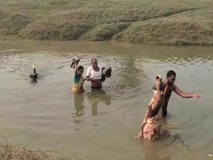 जीवितहानी होण्याची शक्यताशेताला जाण्यासाठी रस्ताच उपलब्ध नसल्याने नदीच्या पाण्यातूनच जावे लागते. त्यातच अचानकपणे पाण्याचा प्रवाह वाढून जीवितहानी होण्याची शक्यता नाकारता येत नाही.तसेच यंदा अनेक शेतकऱ्यांना पेरणी पासून वंचित रहावे लागले. त्यामुळे शासनाने तात्काळ छोटासा पूल बांधून द्यावा. - मष्णाजी हुलबा औरादे, सरपंच, वझरगा