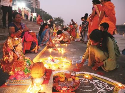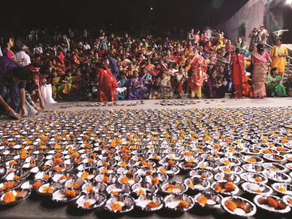 दिव्यांनी उजळले नदीपात्र; परिवाराच्या दीर्घायुष्यासाठी महिलांनी केली गंगेची आरती