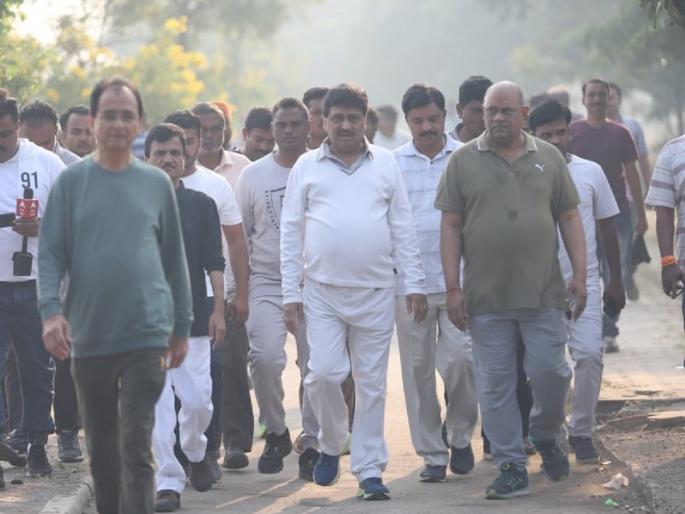 राहुल गांधी यांच्या भारत जोडो यात्रेत हजारो जण दररोज पायी अंतर कापत आहेत. राहुल गांधी हे स्वत: फिट असून ते न थकता यात्रेत पायी चालत आहेत. त्यामुळे त्यांच्यासोबत यात्रेत सहभागी झाल्यानंतर स्टॅमिना टिकून रहावा यासाठी जिल्ह्यातील काँग्रेसचे नेते अन् पदाधिकारी व्यायामाला लागले आहेत. बुधवारी पहाटे माजी मुख्यमंत्री अशोकराव चव्हाण, माजी मंत्री डी.पी.सावंत, आमदार अमरनाथ राजूरकर यांच्याासह शेकडो काँग्रेस कार्यकर्ते आणि नांदेडकरांनी विमानतळ रस्त्यावर वॉक केला. यावेळी नागरिकांनी त्यांच्यासोबत सेल्फीही काढला.