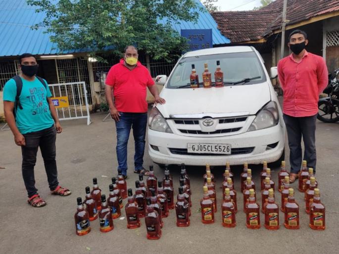 लोकमत न्यूज नेटवर्कनवापूर : औरंगाबाद येथून कडोदरा सुरतकडे विना परवाना विदेशी मद्याची वाहतूक करणाऱ्या वाहनासह पावणेपाच लाख रुपयांचा मुद्देमाल एलसीबीच्याकर्मचाऱ्यांनी ताब्यात घेतला़ पथकाकडून संशयित वाहन चालकासही अटक करण्यात आली आहे़औरंगाबाद ते कडोदरा असा प्रवास करणाºया जी़जे ५ सी़एल ५५२६ हे वाहन राष्ट्रीय महामार्गावरुन नवापुर येथून करंजी मार्गे झामणझर रस्त्याकडे वळाली. सोनगढकडे जाणारा हा रस्ता आहे. दरम्यान अवैध एलसीबीचे कर्मचारी महेंद्र नगराळे, जितेंद्र तोरवणे व शांतीलाल पाटील यांना गुप्त बातमीद्वारे या मार्गाने अवैध मद्य तस्करी होणार असल्याची माहिती मिळाली होती़ यांच्या लक्षात हा प्रकार आल्याने त्यांनी खाजगी वाहनाने त्या कारचा पाठलाग केला. झामणझर गावाजवळ वाहनास अडवून विचारपुस केली असता चालकाने प्रारंभी उडवाउडवीची उत्तरे दिल्याने संशय बळावला. वाहनाची तपासणी केली असता त्यात दोन पोत्यांमध्ये ७३ हजार ७२० रुपयांच्या विदेशी मद्याच्या बाटल्या आढळून आल्या़ ७३ हजाराच्या मद्यासह पथकाने चार लाख रुपयांचे वाहनही जप्त केले आहे़याप्रकरणी चालक मोहसिन ऊर्फ मुन्ना अब्दुल कादर मावद रा. सुरत याच्याविरोधात गुन्हा दाखल करण्यात आला असून त्यास अटक करण्यात आली आहे.जिल्हा पोलीस अधिक्षक महेंद्र पंडीत, अप्पर पोलीस अधिक्षक चंद्रकांत गवळी, स्थानिक गुन्हे अन्वेषण शाखेचे पोलीस निरिक्षक किशोर नवले यांच्या मार्गदर्शनाखाली महेंद्र नगराळे, जितेंद्र तोरवणे व शांतिलाल पाटील यांच्या पथकाने ही कारवाई केली.