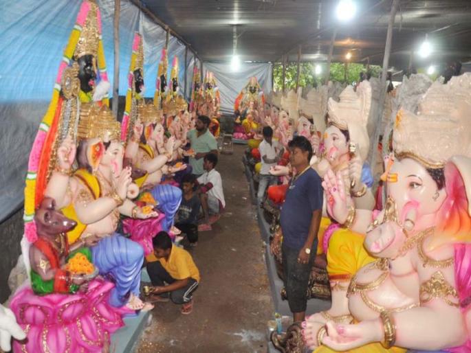 येत्या 13 सप्टेंबरपासून गणेशोत्सवाला सुरुवात होत आहे. त्यामुळे येथील मूर्ती कारखान्यांमध्ये कामाला वेग देण्यात आला आहे. मूर्ती तयार करण्यासाठी शेकडो हातांची लगबग सुरू आहे. हजारो लहान, मोठय़ा मूर्ती आकारास येऊ लागल्या आहेत. येथील मूर्तीकारांकडून तयार करण्यात येणारे साचे विशिष्ट पद्धतीचे राहत असल्यामुळे खान्देशातील अनेक मूर्तीकार ते घेवून जात असतात. येत्या महिनाभरात येथील मूर्ती उद्योगातून लाखो रुपयांची उलाढाल होणार आहे.