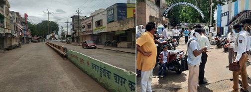 लोकमत न्यूज नेटवर्कशहादा : शहरासह तालुक्यात कोरोनाचा विळखा घट्ट होत असल्याने जिल्हाधिकाऱ्यांच्या आदेशान्वये रविवारी सकाळी नऊ ते रात्री १२ वाजेपर्यंत संचारबंदी लागू करण्यात आल्याने शहरात सर्व व्यवहार बंद होते. रस्त्यांवर सर्वत्र शुकशुकाट होता. मुख्य बाजारपेठ व ठिकठिकाणी पोलिसांचा बंदोबस्त तैनात होता. तरीदेखील काही नागरिक सकाळी मोटारसायकलीने फेरफटका मारताना दिसून आले. विनाकारण फिरणाºयांवर पोलिसांनी दंडात्मक कारवाईचा बडगा उगारला. दुपारनंतर मात्र शहरात सर्वत्र शुकशुकाट होता.बाधित व्यक्तींच्या संपर्कात आलेल्यांची साखळी तोडण्यासाठी शहरात रविवारी सकाळपासूनच संचारबंदी लागू करण्यात आली होती. गेल्या तीन महिन्यात रुग्ण संख्या ७० पर्यंत पोहोचली असून त्यात काहींचा मृत्यू झाला आहे. त्यामुळे प्रशासन खडबडून जागे झाले. कोरोनाची साखळी खंडित करण्यासाठी प्रशासन विविध उपाययोजना करीत असून नागरिक ऐकण्याच्या तयारीत नव्हते. अखेर वाढती रुग्ण संख्या पाहता जिल्हा प्रशासनाने आठवड्यातून एक दिवस शहर पूर्ण लॉकडाऊन करण्याचा निर्णय घेतला. त्याअनुषंगाने रविवारी संचारबंदी लागू करण्यात आली होती. औषधांची दुकाने, दवाखाने व दूध विक्री वगळता सर्वच प्रकारचे व्यवहार बंद ठेवण्यात आले होते. एरव्ही संचारबंदीतही हातगाड्यांवर भाजीपाला व फळे विक्री करणाºया विक्रेत्यांनीही संचारबंदीचा धसका घेत आपले व्यवसाय बंद ठेवले होते.संचारबंदी व जनता कर्फ्यूचे आदेश असतानाही शहरात विनाकारण मोटारसायकल घेऊन फिरणाºया ४१ मोटारसायकलस्वारांवर पोलिसांतर्फे कारवाई करण्यात आली. पोलीस निरीक्षक किसन नजन पाटील, सहायक पोलीस निरीक्षक दिनेश भदाणे व पोलीस कर्मचाºयांनी शहरातील ठिकठिकाणी बंदोबस्त ठेवला होता. कारण नसताना फिरणाºयांना आडवून चौकशी केली जात होती. योग्य कारण असले तर सोडून दिले जात होते अन्यथा दंडात्मक कारवाई पोलीस विभागामार्फत करण्यात आली. काही अतिउत्साही नागरिकांना पांगविण्यासाठी पोलिसांनी लाठीचा प्रसादही दिला. डॉ.बाबासाहेब आंबेडकर पुतळा परिसरात ४१ वाहन चालकांकडून सुमारे २३ हजार ५०० रुपये दंड वसूल करण्यात आला. ही कारवाई वाहतूक शाखेचे कर्मचारी दादाभाई साबळे, अजय पवार, मनिंदर नाईक, तोसिफ शेख, विकास चौधरी, अतुल देसले यांच्या पथकाने केली.प्रशासनाने जाहीर केलेल्या जनता कर्फ्यूला नागरिकांनी उत्स्फूर्त प्रतिसाद दिला असून प्रशासनाच्या साथीने शहरात कोरोना विषाणू संक्रमणाची साखळी तोडण्यासाठी प्रयत्न करण्याचा निर्धार केला. बाधितांची संख्या दिवसेंदिवस वाढत असल्याने शहादा कोरोनाचे हॉटस्पॉट होऊ नये यासाठी सर्वांनी सामूहिक प्रयत्न करण्याची गरज असल्याचे मत सुज्ञ नागरिका