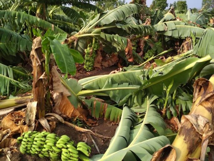 शहादा : शहादा तालुक्यातील ब्राम्हणपुरीसह परिसरात वादळी वा:यासह जोरदार पावसामुळे ब्राम्हणपुरी, गोगापूर, कुरंगी, रायखेड शिवारात केळी पिकाचे मोठय़ा प्रमाणात नुकसान झाल्याचे चित्र आहे.शहादा तालुक्यातील ब्राम्हणपुरीसह आजूबाजूच्या गावांमध्ये मंगळवारी रात्री साडेअकरा वाजेच्या सुमारास पावसाने जोरदार हजेरी लावली. सुमारे तासभर चालेल्या वादळी वा:यासह झालेल्या पावसामुळे शेतक:यांची चांगलीच धावपळ उडाली होती.ब्राम्हणपुरी, रायखेड, सुलतानपूर, गोगापूर, कुरंगी, भागापूर, जवखेडा आदी गावासह परिसरात पावसाने जोरदार हजेरी लावली. मंगळवारी परिसरात दुपारनंतर ऊन-सावलीचा खेळ सुरू होता. अचानक रात्री साडेअकराच्या सुमारास वादळी वा:याला सुरुवात झाली यानंतर जोरदार पावसाने हजेरी लावली. सुमारे तासभर सुरु असलेल्या पावसामुळे शेतक:यांच्या केळी पिकाचे नुकसान झाले. अगोदरच केळी पिकाला भाव नाही आणि त्यात आलेल्या अस्मानी संकटांमुळे शेतक:यांचा हिरमोड झाला आहे. या नुकसानीची पाहणी करून अधिका:यांनी त्वरित पंचनामे करावे अशी मागणी शेतक:यांतर्फे करण्यात येत आहे.हळदाणीनवापूर तालुक्यातील हळदाणीसह परिसरात मंगळवारी रात्री दीड वाजेच्या सुमारास मेघ गजर्नेसह पावसाने आगमन केल्यामुळे गावात व परिसरात शेती कामांसह घर दुरूस्तीला वेग आला आहे.जून महिन्याला सुरूवात झाल्याने आपापल्या शेतातील शेती कामांना सुरूवात केली होती. तसेच पाळीव प्राण्यासाठी लागणा:या चा:याची साठवण करीत होते. काही शेतका:यांनी ट्रॅक्टरच्या सहाय्याने नांगरणी, वखरणीची कामे सुरू केली आहे. तसेच यंदा बागायतीची कापसाच्या लागवडीला उशीर झाल्याचे बोलले जात आहे.