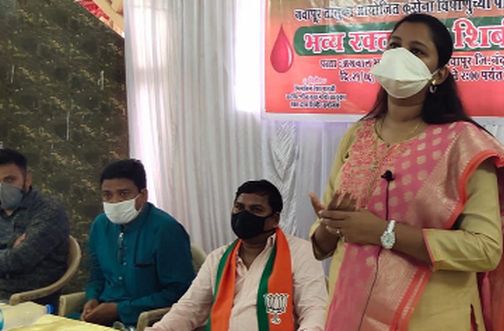 लोकमत न्यूज नेटवर्कनवापूर : शहरात भारतीय जनता युवा मोर्चा नवापूर तालुका शाखेकडून कोरोना विषाणूच्या पार्श्वभूमीवर अग्रवाल भवन येथे रक्तदान शिबिर आयोजित करण्यात आले. या शिबिरात ३३ दात्यांनी रक्तदान केले.शिबिराचे उद्घाटन खासदार डॉ.हीना गावीत व जि.प.चे माजी अध्यक्ष भरत गावीत यांच्या हस्ते करण्यात आले. भाजपचे जिल्हा सरचिटणीस राजेंद्र गावीत, चिटणीस एजाज शेख, नगरसेवक महेंद्र दुसाने, माजी नगरसेवक रमेशचंद्र राणा, युवा मोर्चाचे जिल्हा चिटणीस नरेश नाईक, घनश्याम परमार, हेमंत जाधव, भीमसिंग पाडवी, डॉ.जयेश अग्रवाल, शहर अध्यक्ष प्रणव सोनार, जयंती अग्रवाल, जाकीर पठाण, जैनू गावीत, दिनेश चौधरी, समीर दलाल, सौरव भामरे, स्वप्नील मिस्त्री, शैलेश सैन, सुभाष गावीत आदी उपस्थित होते.या वेळी खासदार डॉ.हीना गावीत म्हणाल्या की, नंदुरबार जिल्ह्यात कोरोनाचा प्रादुर्भाव झाल्यानंतर जिल्ह्यातील असंख्य नागरिक देशातील विविध भागात अडकून पडले होते. त्यांना शासकीय योजनेंतर्गत नंदुरबार जिल्ह्यात आणले गेले. जिल्ह्यात कोरोनाच्या प्रादुर्भाव कमी होऊन जिल्हा परत ग्रीन झोनमध्ये यावा यासाठी नागरिकांनी शासनाने दिलेल्या आदेशांचे वेळोवेळी पालन करुन सहकार्य करावे, असे आहवान केले. भरत गावीत यांनी म्हणाले की, कोरोनामुळे रक्ताची केव्हाही गरज पडते. हे पाहता जास्तीत जास्त लोकांनी रक्तदान करुन शासनास सहकार्य करावे, असे आवाहन केले. शिबिरात ३३ दात्यांनी रक्तदान केले. हे रक्त गुजराथ राज्यातील व्यारा येथील जनक हॉस्पिटल रक्तपेढीत पाठविण्यात आले. सूत्रसंचालन कुणाल दुसाने यांनी केले.