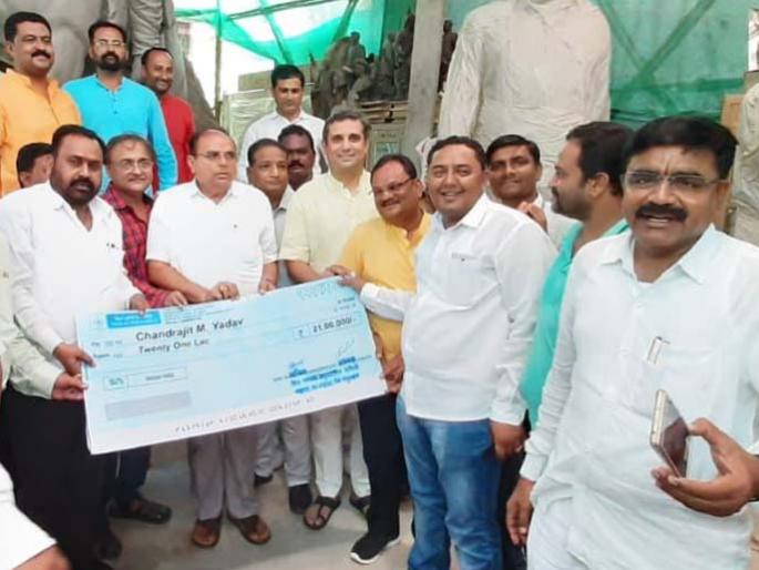 शहादा : शहरातील नियोजित श्री छत्रपती शिवाजी महाराज पुतळा निर्माणाचे काम कांदिवली मुंबई येथील शिल्पकार चंद्रजित यादव करीत असून त्यांना रविवारी येथील शिवस्मारक बहुउद्देशीय समितीतर्फे 21 लाख रुपयांचा धनादेश सातपुडा साखर कारखान्याचे चेअरमन दीपक पाटील, जि.प. सदस्य अभिजीत पाटील व शिवसेनेचे माजी जिल्हाप्रमुख अरुण चौधरी, सामाजिक कार्यकर्ते शाम जाधव यांच्या हस्ते देण्यात आला.