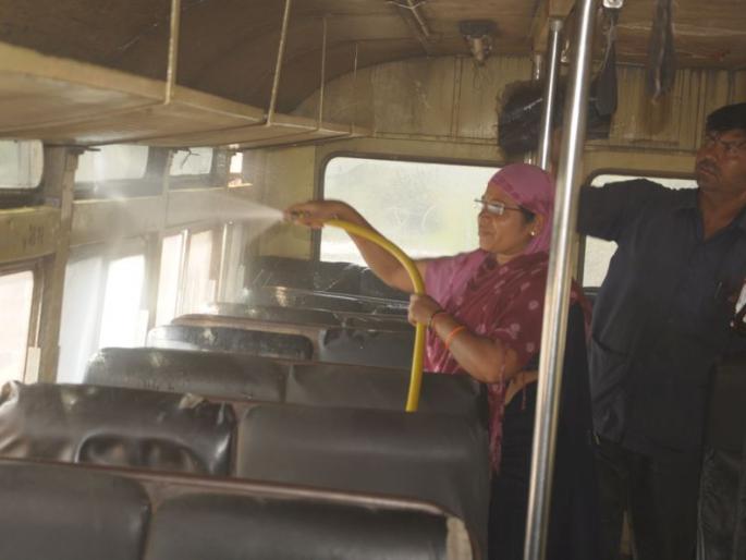 लोकमत न्यूज नेटवर्कनंदुरबार : बसस्थानकात बाहेरगावाहून येणाऱ्या प्रवाशांच्या माध्यमातून कोरोनाची लागण होऊ नये यासाठी नंदुरबार आगाराकडून बसेसची स्वच्छता करण्यासह सॅॅनेटायझरचा वापर करण्यात येत आहे़ यातून प्रवाशांना दिलासा देण्याचा प्रयत्न सुरु आहे़कोरोनाचा परिणाम दैनंदिन सार्वजनिक व्यवस्थेवरती परिणाम झाला असून नंदुरबार बसस्थानकावर प्रवाशांची तुरळक गर्दी आहे. खबरदारीचा उपाय म्हणून आगारातर्फे सर्व बसेस दररोज आतून-बाहेरून स्वच्छ धुण्यावर भर दिला जात आहे. स्वच्छतेसाठी कार्यशाळेतील महिला आणि पुरुष सफाई कामगार यांची नियु्क्ती करण्यात आली आहे़ त्यांच्याकडून फवारणी मशीनच्या टाकीत डेटॉल आणि वॉशिंग पावडर टाकून त्या पाण्याने बसेसची स्वच्छता केली जात असल्याची माहिती आगार प्रमुख मनोज पवार यांनी दिली. जिल्ह्यात शाळा, महाविद्यालय बंद झाल्याने तसेच शासकीय कामानिमित्त नागरिकही येत नसल्याने आगाराच्या उत्पन्नावर परिणाम जाणवत आहे़दरम्यान खबरदारीचा उपाय म्हणून नंदुरबार आगारातून पुणे आणि मुंबई दोन्ही बसेस सध्या रद्द करण्यात आल्या आहेत. तसेच ग्रामीण भागातील मुक्कामी फेºया आणि मानव विकास अंतर्गत होणाºया २४० शालेय फेºया थांबविण्यात आले आहेत. वाहक चालक आणि एसटी कर्मचाऱ्यांना धुळे विभागाकडून मास्क आणि सनेटाइजरचे बुधवारपासून वाटप करण्यात येणार आहे़ याबाबत आगार प्रमुख मनोज पवार यांनी एसटीच्या स्वच्छतेसह कर्मचाºयांसाठी सुविधा देण्यावर भर देत असल्याची माहिती दिली आहे़