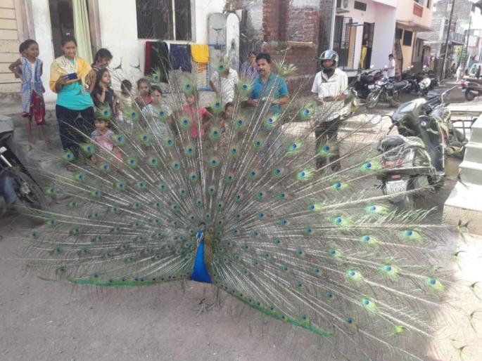 शहरातील गल्लीबोळात अत्यंत निर्भिडपणे वावरुन नागरिकांचे लक्ष वेधणाºया मोरांना पाहून नाच रे मोरा आंब्याच्या वनात या गाण्याच्या ओळी गुणगुणल्या जात आहेत़ पोलीस लाईन मागील भागातील परिसरात येणारे हे मोर शहरातील इतर भागातही विहार करत आहेत़ सातपुड्याच्या पायथ्याशी असलेल्या वनक्षेत्रातून येणाºया या मोरांचा वावर प्रामुख्याने अन्न आणि पाण्याच्या शोधात सुरु झाला असावा असा अंदाज आहे़ अक्कलकुवा शहरालगतच्या शेतशिवारात छोटे मोठे कीटक आणि पाणी मुबलक प्रमाणात असल्याने मोरांचा येथे रहिवास वाढत आहे़ यातून मोर शहरी वसाहतींमध्येही दिसून येत आहे़ संख्या वाढणाºया या पक्ष्यांना कोणताही अपाय आजवर नागरिकांकडून करण्यात आलेला नाही़ याउलट नागरिक घराबाहेर येऊन मोरांचे पिसारा फुलवण्याचे मनोहारी दृश्य पाहून त्यात रमत आहेत़