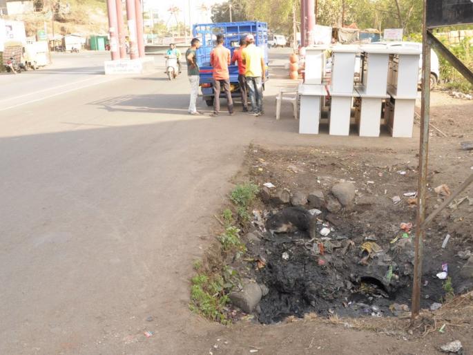याशिवाय गटार तुंबत असल्यामुळे घाण पाणी वाहत असते. दुर्गंधीही पसरत असते. यामुळे या परिसरातील नागरिकांमध्ये नाराजी व्यक्त होत आहे. शहराच्या प्रवेशद्वारावरच ही स्थिती निर्माण झाल्याने पालिकेच्या स्वच्छता अभियानाचा बोजवारा उडत आहे.