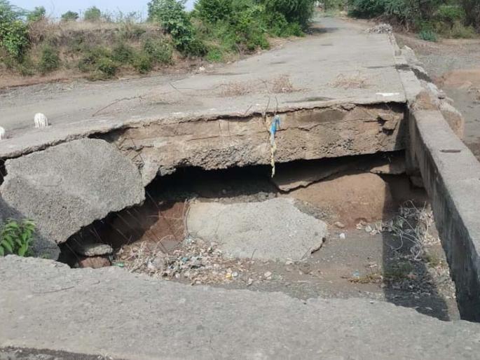 धवळीविहीर-हलालपूर रस्त्यावरील पुलाला भगडाद पडल्याने वाहतुकीला धोका