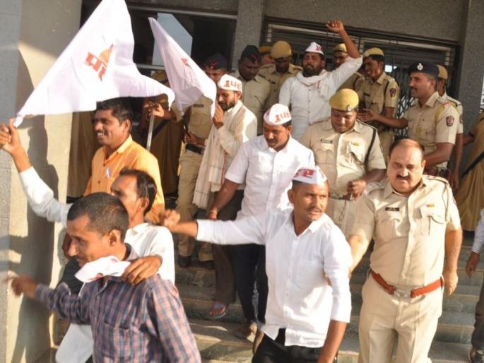 लोकमत न्यूज नेटवर्कनंदुरबार : जिल्हाधिकारी कार्यालयात आंदोलन करणा:या प्रहार संघटनेच्या पदाधिकारी व कार्यकत्र्यावर गुन्हा दाखल करण्यात आला आह़े सोमवारी जिल्हाधिकारी कार्यालयात आंदोलनादरम्यान मनाई आदेश लागू असताना आंदोलन केल्याने गुन्हा दाखल करुन 11 जणांना अटक करण्यात आली होती़ ताब्यातील सर्वाना रात्री उशिरा सोडून देण्यात आल़े सोमवारी दुपारी झालेल्या या प्रकारानंतर शहर पोलीस ठाण्यात पोलीस हेड कॉन्स्टेबल जितेंद्र चंपालाल पाडवी यांनी दिलेल्या फिर्यादीवरुन बिपीन चंद्रकांत पाटील, प्रमोद दगडू पाटील, सावळाराम शिवाजी करे, मोहित राजेंद्र देसले, गुलाब महारु मराठे, अविनाश ईश्वरदास पाटील, संजय हरी पाटील, मनोज सुकलाल कोळी, गोपाळ हिंमत पाटील, नानका गणा पुनेकर, पावबा भिक्कन आखाडे यांच्याविरोधात मनाई आदेशांचे उल्लंघन केल्याप्रकरणी गुन्हा दाखल करण्यात आला आह़े आंदोलकांना पोलीसांनी दुपारी ताब्यात घेतल्यानंतर पोलीस ठाण्यात नेले होत़े त्याठिकाणी अटकेची कारवाई करुन जामिनावर सुटका करण्यात आली़ प्रहार संघटनेच्या वतीने सोमवारी जिल्हाधिकारी कार्यालयासमोर शेतक:यांच्या प्रश्नांसाठी ठिय्या आंदोलन करण्यात आले होत़े हे आंदोलन दुपारी चार्पयत सुरु ठेवण्याची मुभा प्रशासनाने प्रहारला दिली होती़ परंतू दरम्यानच्या काळात पदाधिकारी व कार्यकर्ते यांनी जिल्हाधिकारी कार्यालयात प्रवेश करुन घोषणाबाजी केल्याने जिल्हाधिकारी यांनी लागू केलेल्या मनाई आदेशांचे उल्लंघन झाल्याने कारवाई करण्यात आली़