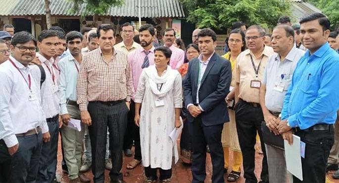 अमिताभ कांत यांनी नवापूर तालुक्यातील भादवड येथे भेट दिली. महाराष्ट ग्राम सामाजिक परिवर्तन अभियानाच्या माध्यमातून गावात होणा:या कामांची त्यांनी माहिती घेतली. यावेळी जिल्हाधिकारी राजेंद्र भारुड, जि.प. मुख्य कार्यकारी अधिकारी विनय गौडा, शिक्षणाधिकारी एम.व्ही.कदम, गटविकास अधिकारी वर्षा फडोळ, गटशिक्षणाधिकारी डॉ.राहुल चौधरी, पिरॅमल फाऊंडेशनचे जिल्हा व्यवस्थापक किशोर घरत, अभियानाच्या जिल्हा कार्यकारी योगिनी खानोलकर आदी उपस्थित होते. कांत यांनी शाळा वर्ग खोल्यांची पाहणी केली. वर्गावर जाऊन विद्याथ्र्यांशी संवाद साधला, अभ्यासक्रमाची माहिती घेतली. डिजिटल साहित्याच्या वापरात दीक्षा अॅपचा वापर कसा केला जातो ते प्रत्यक्ष पाहिले. शालेय पोषण आहार, स्वच्छतागृह, नाविन्यपूर्ण प्रयोगशाळा, नवीन वर्गखोल्या पहिल्या आणि शिक्षकांशी शिकवण्याच्या पद्धती याबाबद्दल चर्चा केली.
