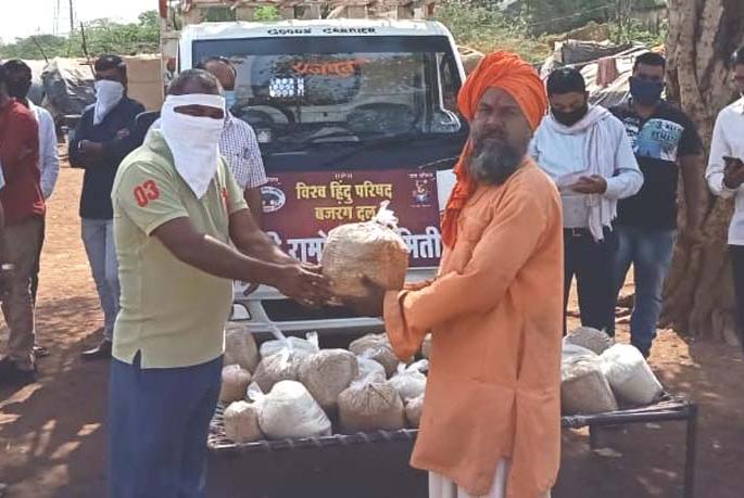 लोकमत न्यूज नेटवर्कखांडबारा : लॉकडाऊनमुळे भटक्या-विमुक्त समाजातील कुटुंबांवर मोठा परिणाम जाणवत आहे. खांडबारा, बर्डीपाडा येथील ५३ कुटुंबांना मदत म्हणून विश्व हिंदू परिषद व बजरंग दल नंदुरबारच्यावतीने नाथजोगी व नाथपंथी डवरी गोसावी समाजाच्या निराधार व्यक्तींना कोरडा शिधा वाटप करण्यात आला.खांडबारा जि.प. मराठी शाळेजवळील १३ व बर्डीपाडा येथील ४० कुटुंबांना गहू, तांदूळ, तूरदाळ वाटप करण्यात आले. या वेळी विसरवाडी पोलीस ठाण्याचे सहायक पोलीस निरीक्षक गणेश न्हायदे, सरपंच शैलेश वळवी, पद्माकर शिंदे, ग्रा.पं. सदस्य वैजनाथ वळवी, अनिल शर्मा, विश्वनाथ पटेल, सुनील नाथजोगी, मनीष पटेल, राकेश पटेल, प्रफुल पटेल, पंकज पटेल, रामकृष्ण पटेल, ललीत पटेल, रामेश्वर पाटील यांच्या हस्ते कोरड्या शिधाचे वाटप करण्यात आले. कोरोना या संसर्गजन्य आजाराबाबत घ्यावयाच्या काळजीबाबत सूचना देण्यात आल्या. विश्व हिंदू परिषदेचे धोंडीराम शिनगर, आर.एस. माळी, अजय कासार, बजरंग दलचे अॅड.रोहन गिरासे, विवेक चौधरी, दुर्गेश चौधरी, किशोर तांबोळी, इंद्रसिंग गिरासे, महेंद्र सोनी, देवेंद्र कासार, पुरुषोत्तम काळे आदींनी या कार्यक्रमाचे संयोजन केले.विसरवाडी : खांडबारा येथे भिक्षा मागून जगणाऱ्या कुटुंबांवर लॉकडाऊनमुळे उपासमारीची वेळ आली. याबाबत विसरवाडी येथील एका व्हाट्सअप ग्रुपवर या गरीब कुटुंबांना मदतीसाठी आवाहन करण्यात आले. त्यांची व्यथा पाहून विसरवाडी येथील सामाजिक कार्यकर्ता जयेश अग्रवाल यांनी खांडबारा येथील श्रीराम किराणाचे संचालक जयू अग्रवाल यांच्याशी संपर्क साधून या १२ भिक्षेकरु कुटुंबांना गहू (पिठाची थैली), तांदूळ, तेल, साखर, डाळी व जीवनावश्यक वस्तूंचे वाटप केले.