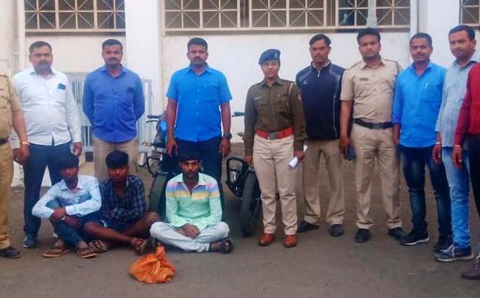 गजनान उर्फ कल्पेश उर्फ जानी संतोष भोसले (२३), प्रभू सवसारी चव्हाण (१९) व लुकेश मुकेश पवार (२०) सर्व रा.जामदे, ता.साक्री यांना अटक करण्यात आली आहे.