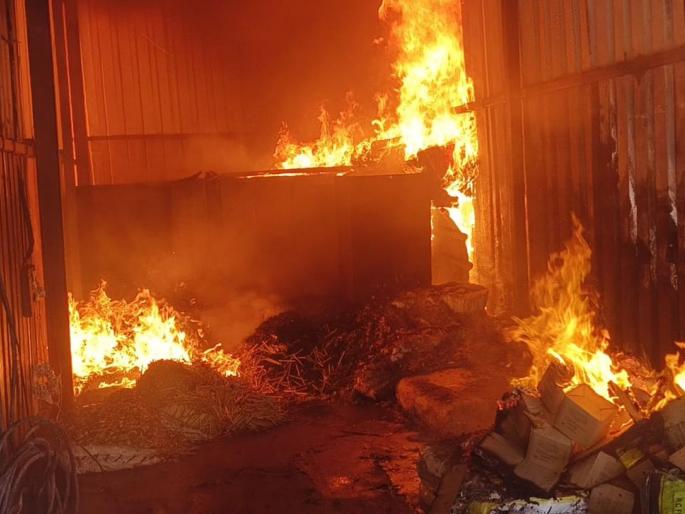 शहरातील डोंगरगाव रस्त्यालगत श्री स्वामी समर्थ मंदिरासमोर मेमन वसाहतीत पत्र्याचे आठ-दहा गाळ्यांचे शेड व गोडावून आहे. या गोडाऊनला सोमवारी दुपारी साडेबारा वाजेच्या सुमारास आग लागून रुपेश भट यांच्या मालकीचे शक्ती प्लाझामधील दिवाळीनिमित्त विक्रीसाठी आणलेल्या इलेक्ट्रीक व इलेक्ट्रॉनिक वस्तू फ्रिज, टिव्ही, कुलर, चक्की, स्पीकर यासह बिले, चेकबुक, खरेदीचे बील आदी कागदपत्रे जळून खाक झाली. धर्मेद्र नहाटा यांच्या दुकानातील इलेक्ट्रीक व इलेक्ट्रॉनिक वस्तू जळून नुकसान झाले.