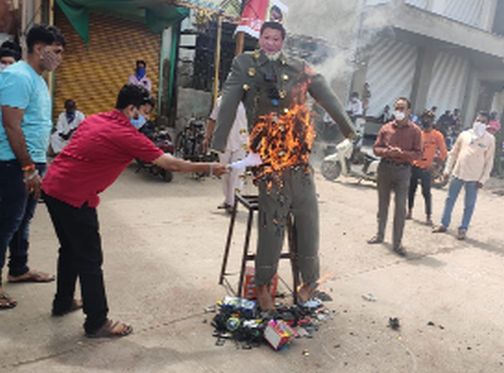 शहादा येथे चिनी वस्तूंची होळी