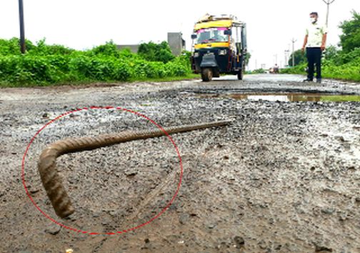 फरशी पुलावर बाहेर निघालेली लोखंडी सळई ठरतेय धोकेदायक