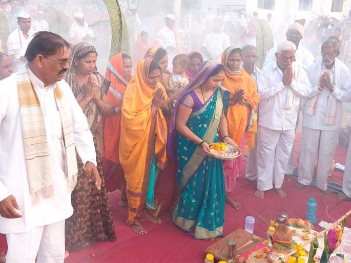 लोकमत न्यूज नेटवर्कनंदुरबार : तालुक्यातील कोठली येथे रविवारी भातीजी संप्रदायातर्फे नवकुळ नागपूजा भातिजी नामयज्ञ महोत्सवास मंत्रोच्चाराने सुरुवात करण्यात आली. सायंकाळी निघालेल्या शोभायात्रेने तीन राज्यातील आलेल्या हजारो भाविकांचे लक्ष वेधून घेतले होते. सोमवारी पहाटे कार्यक्रमाचे समापन होणार आहे.रविवारी दुपारी प.पू. शिवाजी महाराज यांनी गणेश वंदनाने महोत्सवाला सुरुवात केली. त्यानंतर 11 जोडपे यजमानांनी मंत्रोच्चाराचा गजराने यज्ञाची विधिवत पूजाअर्चा केली. सायंकाळी सहा वाजता सामूहिक आरती करण्यात येऊन महाप्रसादाचे वाटप करण्यात आले. रात्री साडेआठ ते नऊ वाजेर्पयत भजन व गुरुवंदना कार्यक्रम झाला. विविध ठिकाणाहून आलेल्या संत महात्म्यांचे स्वागत करण्यात आले. याप्रसंगी जयसिंग महाराज, जंबूभाई महाराज, सेवादास महाराज, खुमानदास महाराज, कुवरसिंग महाराज, आत्माराम महाराज, नारसिंग महाराज, सोमाभाई महाराज, रुमशीभाई महाराज, शिवाजी महाराज, अनितामाता उपस्थित होते.दिवसभर भाविकांची मांदियाळीजिल्ह्यात मोठय़ा प्रमाणावर प.पू.भातिजी महाराज यांचा संप्रदाय असून महोत्सवानिमित्ताने कोठली गावात दिवसभर भाविकांची मांदियाळी दिसून आली. संपूर्ण गावात भक्तीमय व धार्मिक वातावरण होते. कार्यक्रमासाठी महाराष्ट्र, गुजरात व मध्य प्रदेशातील भाविक उपस्थित होते.संपूर्ण गावात उभारल्या गुढय़ागुढय़ा उभारणे हे विजयाचे व मांगल्याचे प्रतीक असल्याने संपूर्ण गावात घराघरावर भाविकांनी गुढय़ा उभारल्या होत्या. रस्त्याच्या कडेला ठिकठिकाणी युवतींनी आकर्षक रांगोळ्या काढल्या होत्या.शोभायात्रेने वेधले लक्षआदिवासी नृत्याने महोत्सवाला दुपारी प्रारंभ झाल्यानंतर गावातून संत व महात्म्यांची शोभायात्रा काढण्यात आली. महोत्सव यशस्वी करण्यासाठी एकलव्य गणेश मंडळ, वीर भातिजी मंडळ, सिद्धार्थ नवयुवक मंडळ, स्वाध्याय परिवार, श्रीराम मंडळ, बालाजीवाडा ग्रुप, माऊली माता ग्रुप, युवा प्रतिष्ठान मंडळ तसेच गावातील सर्व महिला बचत गटाच्या महिलांनी परिश्रम घेतले.