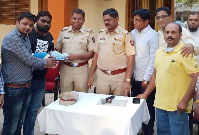 संपूर्ण जगात कोरोना वायरसने थैमान घातले असून, जनतेसाठी २४ तास सेवा बजावणाºया पोलीस प्रशासनासाठी शहादा तालुका केमिस्ट अॅण्ड ड्रगिस्ट असोसिएशनतर्फे करोना वायरस जनजागृती अभियानांतर्गत मास्कचे वाटप करण्यात आले. या वेळी उपविभागीय पोलीस अधिकारी पंडित सपकाळे व शहादा पोलीस ठाण्याचे शहर पोलीस निरीक्षक किसन नजन पाटील, संघटनेचे पदाधिकारी, विभागीय सदस्य विजय चव्हाण, जिल्हा जनसंपर्क प्रमुख ललित छाजेड, उपाध्यक्ष सत्यानंद पाटील, तालुकाध्यक्ष अशिष छाजेड, राकेश जैन, उपाध्यक्ष हान्नान भाई, मनोज पाटील, दादु पाटीले उपस्थित होते.