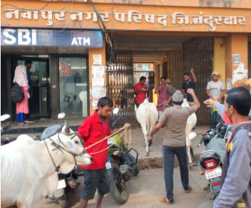 नवापूर शहरातील गुरांना नगरपालिकेत आणून आंदोलन करण्याचा प्रकार पहिल्यांदाच पाहायला मिळाले.नगर पालिकेबाहेर आंदोलन पहाण्यासाठी लोकांनी गर्दी केली होती.
