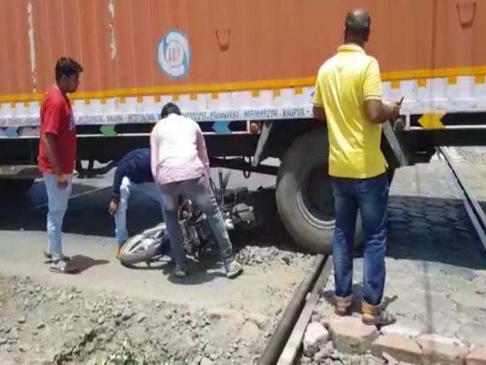 नवापूरात ट्रॉलाखाली दुचाकी घुसली, दुर्घटना टळली
