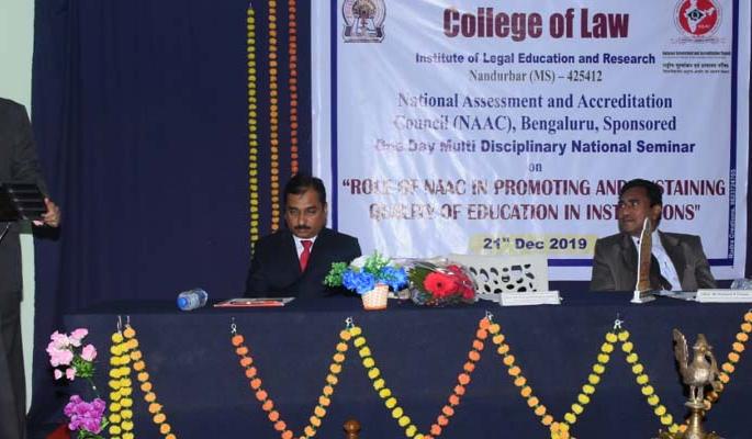 लोकमत न्यूज नेटवर्कनंदुरबार : शहरातील विधी महाविद्यालयातील कायदेविषयक शिक्षण व संशोधन संस्थेत राष्ट्रीय चर्चासत्र घेण्यात आले. हे चर्चासत्र राष्ट्रीय मूल्यांकन व प्रमाणन परिषद बेंगलोर यांच्या सौजन्याने आयोजित करण्यात आले होते.परिषदेचे उद्घाटन जिल्हा सत्र न्यायाधीश प्रमोद तरारे यांच्या हस्ते करण्यात आले. अध्यक्षस्थानी माजी अॅडिशनल सॉलिसिटर जनरल आॅफ इंडिया अॅड.राजेंद्र रघुवंशी होते. न्यायाधीश तरारे म्हणाले की, विधी महाविद्यालयांनी मोफत कायदा सल्ला देणे, कायद्याची जागृकता सर्वसामान्यांमध्ये निर्माण करणे ही जबाबदारी पार पाडणे आवश्यक असल्याचे सांगितले. अॅड.रघुवंशी यांनी यूजीसी तसेच नॅक या संस्थांच्या स्थापनेमागील उद्दिष्टे, भारतातील उच्च शिक्षणाची परिस्थिती, विदेशातील शिक्षण पद्धतीमध्ये असलेल्या तफावतीबद्दल याबाबत माहिती दिली. कायदा शिक्षण देताना प्राध्यापक तसेच विद्यार्थ्यांमध्ये सामाजिक जबाबदारी पार पाडणेसंदर्भात जाणीव करून दिली.चर्चासत्रात महाराष्ट्र, गुजरात, मध्य प्रदेश, आंध्र प्रदेश राज्यातून प्राध्यापकांनी सहभाग नोंदविला. १२५ सदस्यांनी चर्चासत्रात सहभाग घेतला. विधी विभागाचे अधिष्ठाता डॉ.बी.वाय. रेड्डी, प्राचार्य डॉ.शहनाज बिल्लिमोरिया, प्राचार्य डॉ.पायल पारेख, प्राचार्य डॉ.व्ही.वाय. बहिरम यांनी विविध सत्रांमध्ये मार्गदर्शन केले. समारोपप्रसंगी प्राचार्य डॉ.व्ही.एस. श्रीवास्तव यांनी उच्च शिक्षणाचा दर्जा टिकवणेसंदर्भात राष्ट्रीय मूल्यांकन व प्रमाणन परिषदेची भूमिका स्पष्ट केली. अनेक प्राध्यापकांनी संशोधन पेपर सादर केले. प्राध्यापकांनी सादर केलेले संशोधन पेपर हे पुस्तिकेच्या स्वरूपात प्रसिद्ध केले जाणार आहे. चर्चासत्राच्या आयोजनात प्राचार्य डॉ.एन.डी. चौधरी, समन्वयक डॉ.एस.एस. हासानी, प्राध्यापक व कर्मचाऱ्यांनी परिश्रम घेतले.