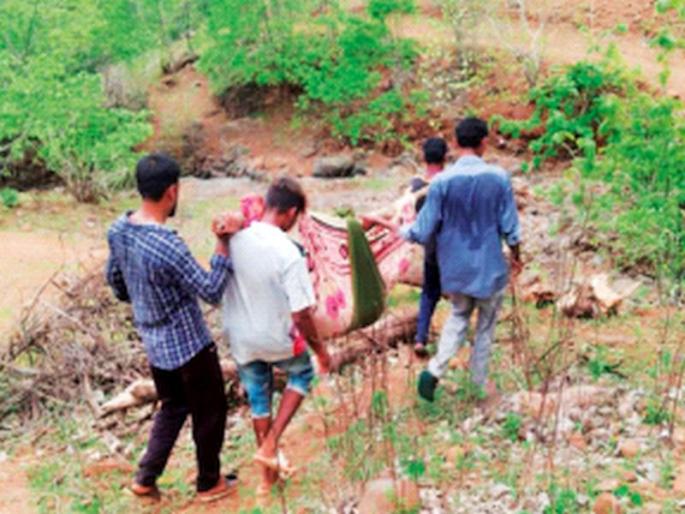 -किशोर मराठे वाण्याविहीर (जि. नंदुरबार) : सातपुड्यात रस्त्याअभावी रुग्णालयात झोळी अर्थात ‘बांबूलन्स’मधून नेण्यात येणाऱ्या गर्भवतीला कळा अनावर झाल्याने तिची प्रसूती पळसाच्या झाडाच्या आडोशाला झाल्याचा धक्कादायक प्रकार मंगळवारी घडला आहे. अक्कलकुवा तालुक्यातील बोडीपाडा येथील ही माता असून, बोडीपाडा ते दसरापादर असा तीन किलोमीटरचा रस्ता नसल्याने तिची प्रसूती झाडाखाली करण्याची वेळ कुटुंबीयांवर आली. वंतीबाई आबला वसावे असे मातेचे नाव आहे.