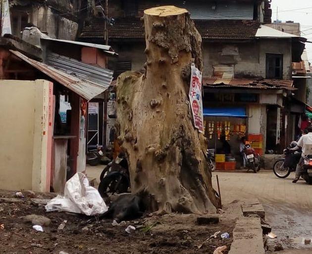 तोडलेल्या जुन्य वृक्षांचे खोड आजही ठिकठिकाणी उभे आहे. ‘लोकमत’ल गुरुवारी बातमी येताच असे खोड गायब करण्याचे काम काहींनी सुरू केले होते. तर काहींनी खोडाच्या आजूबाजूला काही वस्तू ठेवण्याचा प्रयत्न केला.