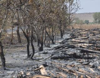 केळीच्या खांबांसोबत जळाली सामाजिक वनीकरणाची झाडे