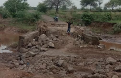 लोकमत न्यूज नेटवर्कमंदाणे : शहादा तालुक्यातील लोहारे ते तिधारे दरम्यान असलेल्या मोठ्या नाल्यावर लाखो रूपये खर्चून पुलाचे बांधकाम करण्यात आले होते. मात्र अवघ्या वर्षभरातच या पुलाचे तिनतेरा वाजले असून, ठेकेदार व अधिकाऱ्यांच्या संगनमताने नित्कृष्ट दर्जाचे काम करून लाखो रूपयांचा भ्रष्टाचार झाल्याचे या प्रकारामुळे उघड झाले आहे. या कामाची सखोल चौकशी करून दोषींवर कडक कारवाई करण्याची मागणी सरपंच मिराबाई ठाकरे, तिधारे ग्रामस्थ व परिसरातील नागरिकांतर्फे करण्यात आली आहे.दरम्यान पुल तुटल्याने तिधारे व पुढे डामळदा-खेतियाकडे जाणारा हा रस्ताच बंद पडल्याने वाहनधारक कमालीचे त्रस्त झाले असून, नागरिकांना नाल्यातून पायपीट करावी लागत आहे. त्यामुळे परिसरात प्रशासनाच्या बेजबाबदार कारभारामुळे नागरिक संताप व्यक्त करीत आहेत.याबाबत असे की, शहादा तालुक्यातील लोहारा, तिधारे, कलमाडी, गोगापूर, डामळदा, टुकी व जवखेडा या भागाकडे प्रशासनाचे नेहमीच दुर्लक्ष असते. या भागतील रस्त्यांवर दरवर्षी लाखो रूपये खर्च केला जातो. मात्र भ्रष्ट यंत्रणेमुळे रस्त्याची अवस्था दयनीय होवून जाते. खड्ड्यांच्या रस्त्यामुळे तिधारे ते डामळदा, खेतिया रस्त्यावर तिधारे-लोहारा दरम्यान मोठ्या नाल्यांवर गेल्या वर्षी लाखो रूपये खर्च करून पुलाचे बांधकाम करण्यात आले.या पुलाचे काम जिल्हा परिषदेच्या बांधकाम विभागामार्फत करण्यात आले आहे. तर लोहारे ते तिधारे रस्ता मुख्यमंत्री सडक योजनेंतर्गत सन २०१६-१७ मध्ये मंजूर असल्याचे सांगितले जात आहे. या मार्गावरील रस्त्याचे कामदेखील अर्धवट अवस्थेत आहे. नाल्यावरील पुलाचे बांधकाम तांत्रिक दृष्ट्या अत्यंत सदोष पद्धतीने करण्यात आल्यामुळे पुलाचे काही महिन्यातच १२ वाजले. पुलाच्या दोन्ही बाजुकडील भराव वाहून गेल्याने मोठ-मोठे खड्डे तयार झाले आहेत. पुलाचे कठडे तुटल्याने रस्ता पूर्णपणे खंडित झाला आहे. उन्हाळ्यात नाला कोरडा असल्याने दुचाकी वाहनधारक नाल्यातून प्रवास करतात. चारचाकी वाहनासह नाल्यातून प्रवास करतात. चारचाकी वाहनासह बैलगाडी घेवून जाणे अवघड असल्याने वाहनधारक त्रस्त झाले आहेत.याबाबत निकृष्ट दर्जाने झालेल्या पुलाच्या कामाची नाशिक येथील गुण व नियंत्रण विभागामार्फत सखोल चौकशी करून दोषींवर कडक कारवाई करावी, अशी मागणी सरपंच मिराबाई ठाकरे, परिसरातील नागरिक यांनी केली असून, याबाबत मुख्यमंत्र्यासह वरिष्ठांना कामाच्या छायाचित्रासह निवेदन देण्यात येणार आहे, अशी माहिती जागृत ग्रामस्थांनी दिली आहे.मुख्यमंत्री ग्रामसडक योजनेंतर्गत झालेल्या लोहारा-तिधारे रस्त्याचे व पुलाच्या कामाचे पूर्णपणे तिनतेरा वाजले आहेत. अधिकारी व ठेकेदाराच्या संगन