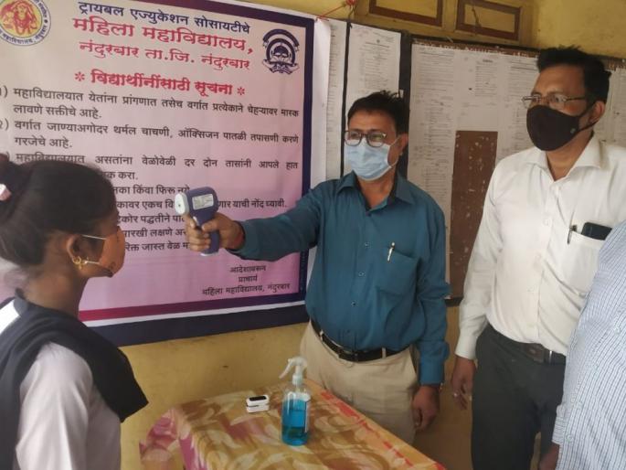 १८ हजार विद्यार्थी n नंदुरबार जिल्ह्यातील सर्व ४३ महाविद्यालयात एकूण १८ हजार ३५० विद्यार्थी यंदा विविध शैक्षणिक अभ्यासक्रमासाठी प्रवेशित झाले आहेत. हे सर्व विद्यार्थी येणार नसले तरी निम्मे विद्यार्थी येण्याची शक्यता होती. यामुळे महाविद्यालयांकडून प्रवेशद्वारावर मास्क, सॅनेटायझर्स आणि थर्मल स्कॅनिंगची व्यवस्था करण्यात आली होती. येणाऱ्या प्रत्येक विद्यार्थ्याची तपासणी करून आत सोडण्यात आल्याची माहिती देण्यात आली आहे. ताप किंवा इतर तत्सम लक्षणे असलेले विद्यार्थी आढळून आले नसल्याची माहिती देण्यात आली आहे. महाविद्यालये सुरू झाल्यानंतर विविध विद्यार्थी संघटनांकडून महाविद्यालयांमध्ये विद्यार्थ्यांचे स्वागतही करण्यात आले.