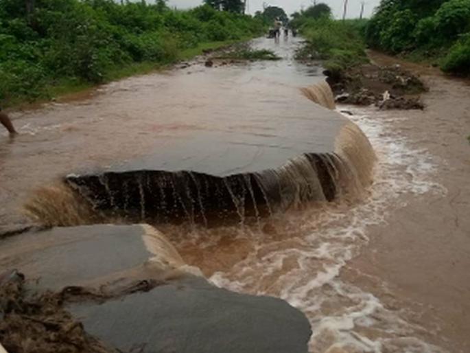 नाल्याच्या पाण्याने रस्ताच काढला खोदून