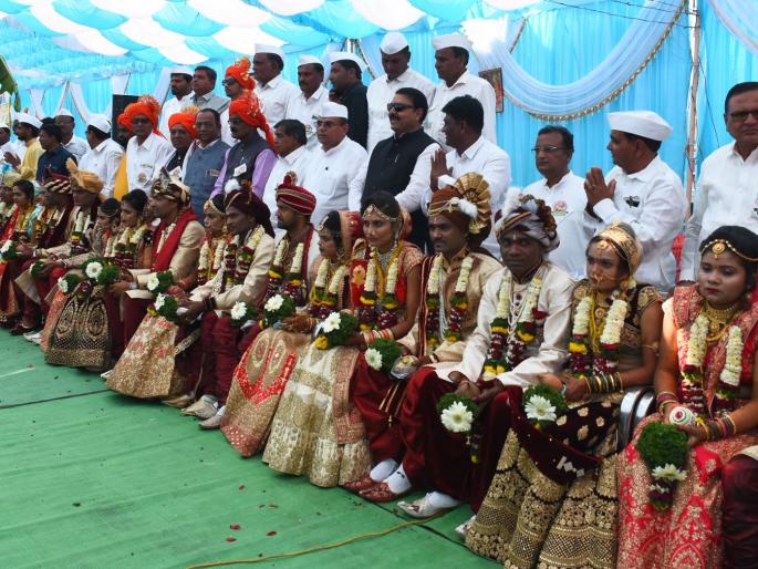 लोकमत न्यूज नेटवर्कलहान शहादा : समस्त लेवा पाटीदार गुजर समाज, गुजर समाज मंचतर्फे चौथा सामुदायिक विवाह सोहळा रविवारी लहान शहादा येथे उत्साहात झाला. या सोहळ्यात 17 जोडप्यांचे शुभमंगल लावण्यात आले. या सोहळ्यात तीन राज्यातील सुमारे 20 हजार समाज बांधवांनी उपस्थिती लावली होती.नंदुरबार तालुक्यातील लहान शहादा येथील जवाहरलाल नेहरू विद्यालयापासून सजविण्यात आलेल्या वाहनातून वरांची सकाळी नऊ वाजता मिरवणूक काढण्यात आली. 10 वाजता सर्व वर विवाहस्थळी दाखल झाले. या ठिकाणी 17 जोडप्यांचा ब्राम्हवृदांच्या मंगलाष्टकांनी व शहनाईच्या मंद सुरात उत्साहात शुभमंगल सोहळा झाला. याप्रसंगी खासदार डॉ.हिना गावीत, सातपुडा सहकारी साखर कारखान्याचे चेअरमन दीपक पाटील, आमदार डॉ.विजयकुमार गावीत, जिल्हाधिकारी डॉ.मल्लिनाथ कलशेट्टी, आमदार के.सी पाडवी, जिल्हा परिषद सदस्य अभिजित पाटील यांनी मनोगत व्यक्त केले. या वेळी रोहयो व पर्यटन विकास तथा पालकमंत्री जयकुमार रावल यांनी मोबाईलचा माध्यमातून शुभेच्छा संदेश दिला.सोहळ्यास अखिल भारतीय लेवा पाटीदार समाज महिला आघाडीच्या अध्यक्षा कमलताई पुरुषोत्तम पाटील, जिल्हा पोलीस अधीक्षक संजय पाटील, माजी मंत्री अॅड.पद्माकर वळवी, शहाद्याचे नगराध्यक्ष मोतीलाल पाटील, नंदुरबारचे नगराध्यक्ष परवेज खान, देवमोगरा एज्युकेशन सोसायटीचे चेअरमन राजेंद्रकुमार गावीत, जिल्हा परिषदेचे माजी अध्यक्ष भरत गावीत, साने गुरुजी विद्यालय प्रसारक संस्थेचे समन्वयक मकरंद पाटील, शहादा कृषी उत्पन्न बाजार समितीचे सभापती सुनील पाटील, जिज्ञासा दीदी, जिल्हा परिषदेचे माजी उपाध्यक्ष रामचंद्र पाटील, नगरसेविका ज्योती पाटील, सुनील पटेल, महेंद्र पाटील, जगदीश पाटील, अॅड.प्रभाकर पाटील, रघुनाथ पाटील, महेंद्र पाटील, मुरार पाटील, दशरथ पाटील, माधवी पटेल, प्रीती पाटील, वसंत पाटील, संजय पाटील, डॉ.सविता पाटील, गिरीश महाराज, राजेंद्र पाटील आदी उपस्थित होते.सामुदायिक विवाह सोहळ्यासाठी गेल्या तीन ते चार महिन्यांपासून समस्त लेवा पाटीदार गुजर समाज, गुजर समाज मंच व विविध शहरे ग्राम गुजर मित्र मंडळाच्या वतीने तयारी करण्यात येत होती. महाराष्ट्र, गुजरात व मध्यप्रदेशातून 20 हजारांवर व:हाडी या सोहळ्याचे साक्षीदार झाले. अत्यंत शिस्तबद्ध पद्धतीने सोहळा पार पडला. या वेळी समशेरपूर येथील राकेश पाटील व निझर येथील मुकेश पाटील या नवरदेवांनी पाणी वाटप करून श्रमदान केले.समाजातील युवकांकडून या कार्यासाठी मोठा प्रतिसाद मिळाला. या विवाह सोहळ्याकरीता विविध समित्या स्थापन करण्यात आल्या होत्या. त्यात स्वागत समिती, भोजन समिती, मंडप समिती, स्वच्छता समिती, पाणी पुरवठा, इलेक्ट्रिक समिती, ध्वनिक्षेपक समिती, वधू-वर मिर