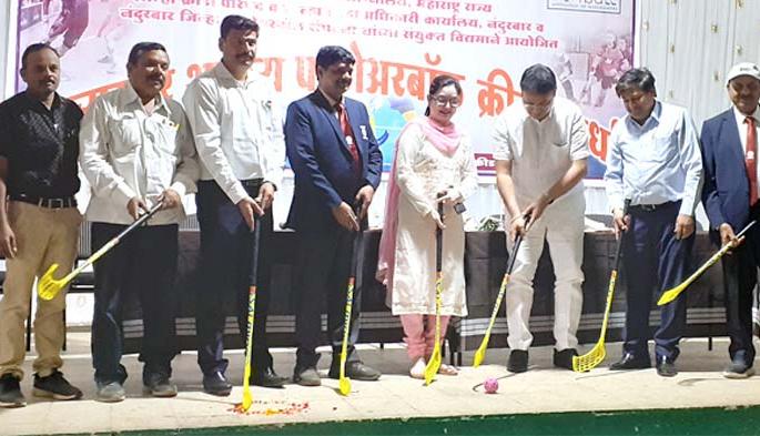 लोकमत न्यूज नेटवर्कनंदुरबार : जिल्हा क्रीडा संकुलात राज्यस्तरीय शालेय फ्लोअरबॉल स्पर्धेचे उद्घाटन नंदुरबार तालुका विधायक समितीचे उपाध्यक्ष मनोज रघुवंशी यांच्या हस्ते करण्यात आले. या स्पर्धेत महाराष्ट्रातील आठ विभागातून ३२ संघातील ४८० मुले-मुली खेळाडूंचा सहभाग आहे.क्रीडा व युवक सेवा संचालनालय, महाराष्ट्र राज्य, पुणेअंतर्गत जिल्हा क्रीडा अधिकारी कार्यालय नंदुरबार यांच्या वतीने व नंदुरबार जिल्हा फ्लोअरबॉल संघटनेच्या सहकार्याने राज्यस्तरीय शालेय फ्लोअरबॉल स्पर्धेचे आयोजन जिल्हा क्रीडा संकुल येथे करण्यात आले आहे. उद्घाटन कार्यक्रमास प्रमुख अतिथी म्हणून जिल्हा क्रीडा अधिकारी सुनंदा पाटील, मुख्याध्यापक संघाचे सचिव प्राचार्य पुष्पेंद्र रघुवंशी, हस्ती बँकेचे चेअरमन कैलास जैन, फ्लोअरबॉल संघटनेचे राज्य सचिव रवींद्र चोथवे, भारतीय फ्लोअरबॉल फेडरेशनचे तांत्रिक चेअरमन जितेंद्रसिंग, क्रीडा अधिकारी दत्ता गडपल्लीवार, क्रीडा शिक्षक प्रा.डॉ.मयूर ठाकरे, जिल्हा सचिव जितेंद्र माळी, रवींद्र सोनवणे, जगदीश बच्छाव, राजेश्वर चौधरी आदी उपस्थित होते.या स्पर्धेसाठी राज्यातून नाशिक, नागपूर, लातूर, मुंबई, पुणे, अमरावती, औरंगाबाद, कोल्हापूर या आठ विभागातून ४८० मुले-मुली खेळाडू नंदुरबारात आले आहेत. या स्पर्धेतून निवड होणारे खेळाडू दिल्ली येथे होणाऱ्या राष्ट्रीय शालेय स्पर्धेत महाराष्ट्र संघाचे प्रतिनिधीत्त्व करणार आहेत. या वेळी क्रीडाधिकारी सुनंदा पाटील यांनी खेळातील सहभाग हा आपल्या वैयक्तिक जीवनाला शिस्त देतो. यासाठी कुठल्या तरी खेळात आपण सहभाग नोंदवायला हवा, असा संदेश विद्यार्थ्यांना दिला. स्पर्धेत पंच म्हणून देवेंद्र सूर्यवंशी, मयूर पाटील, सुशील दहीफळे, भरत चौधरी, जगदीश वंजारी, संजय वसावे, विशाल गावीत आदी काम पहात आहेत. सूत्रसंचालन तुषार सोनवणे तर आभार जितेंद्र माळी यांनी मानले.